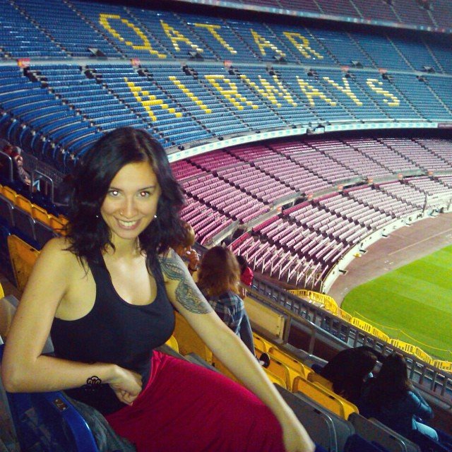 Eu dentro do Camp Nou, estádio do FC Barcelona. Entrei aí no dia em que visitei o museu do clube!