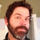 Depois corte um tomate na horizontal. NUNCA na vertical, senão o suco do tomate não sai direito. Pegue uma das metades e esfregue com vontade no pão. Ele vai soltar pedaços da polpa, suco e talvez um pouco das suas sementes.