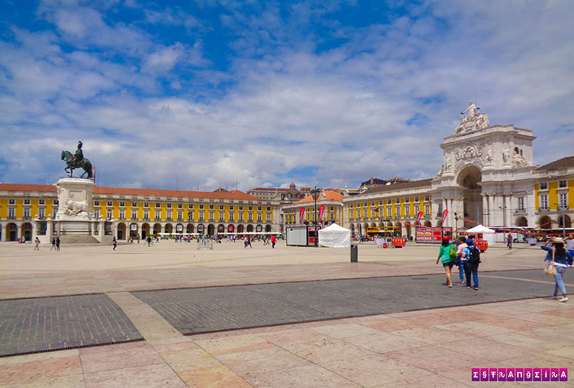 Seguimos até o belo Arco da Augusta, que celebra o renascimento de Lisboa depois do terremoto de 1775. Passando pelo Arco você chega na Praça do Comércio, uma praça ampla que dá para o mar.